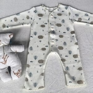 Set de Recibimiento Prematuros – Línea «Pequeños Gladiadores». Enterito. Mangas largas. Sin piecitos. Botones. Picots. Muñeco de Apego