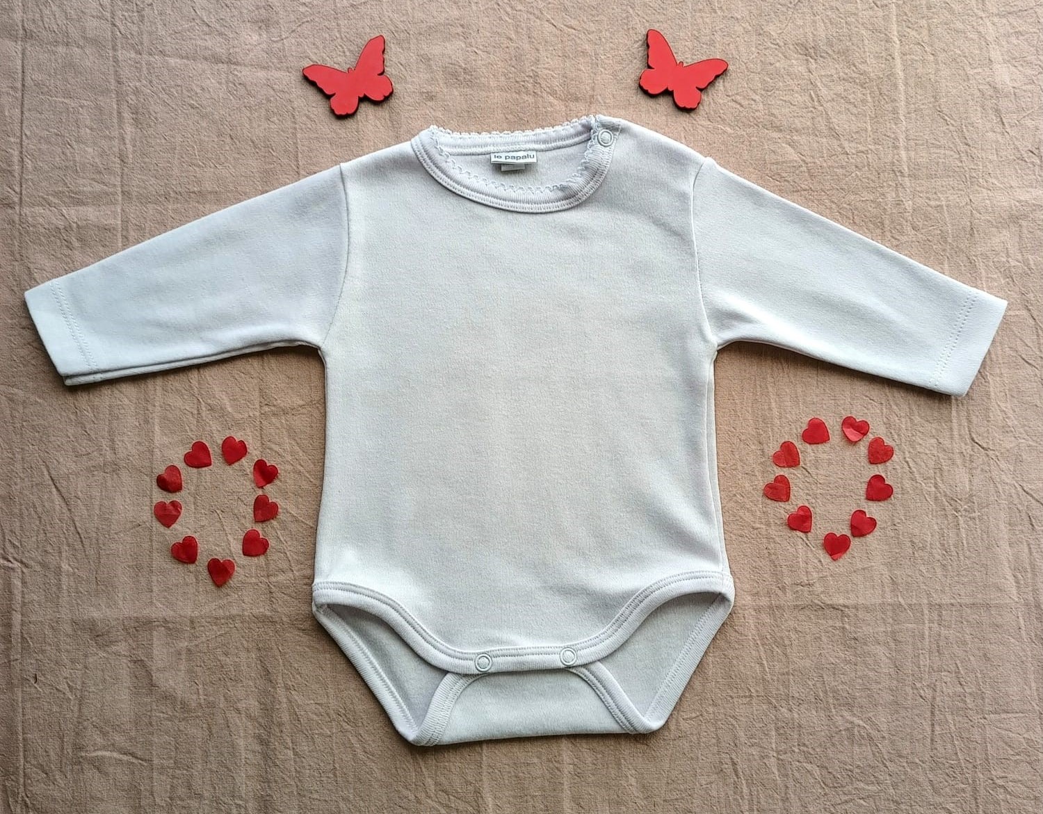 Presentamos el body RN blanco, una prenda única con mangas largas que brinda calidez y estilo a tu pequeño. Este body se destaca por su broche en el cuello, facilitando el cambio de ropa y asegurando la comodidad de tu bebé.