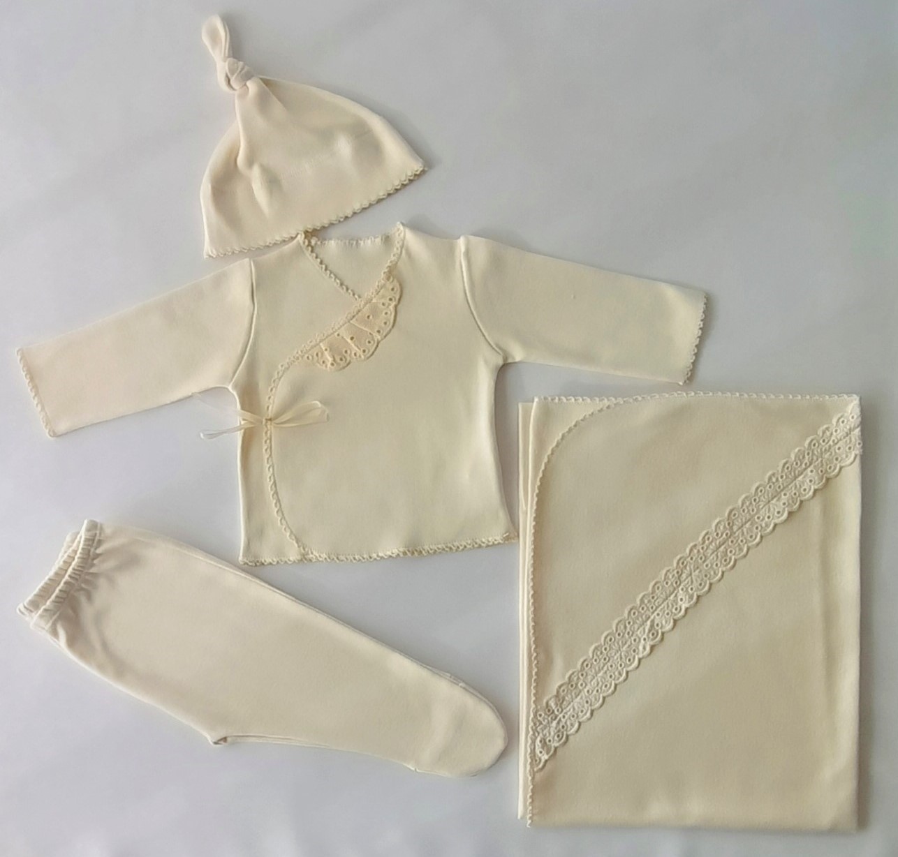 Todos los artículos de este conjunto están confeccionados con algodón premium hipoalergénico, ideal para la piel sensible de los bebés. Sabemos que la seguridad y el confort son prioridad, por lo que hemos elegido materiales de la más alta calidad: algodón pima premium hipoalergénico, que evita irritaciones y permiten que tu bebé se sienta cómodo todo el día. Además, el gorrito con nudo y la manta con broderie son el complemento perfecto, no solo manteniendo a tu bebé abrigado, sino también creando un ambiente acogedor.
